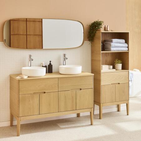 La colonne ALASKA, assortie au meuble sous vasque, offre une solution de rangement intelligente sans encombrer votre espace. Son design épuré, ses étagères spacieuses et ses portes à fermeture douce permettent d’organiser facilement serviettes, produits de soin et accessoires. Fabriquée en MDF plaqué chêne naturel, elle garantit une belle cohérence visuelle avec le reste de l’ensemble.