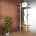 Le portant d'angle JUNE est la solution idéale pour optimiser chaque recoin de votre entrée, dressing ou chambre tout en ajoutant une touche moderne. Parfait pour organiser vêtements, chaussures et accessoires, il est équipé de 3 grandes étagères décor chêne en panneaux de particules mélaminés (PPM) et d'une barre de penderie en acier époxy.