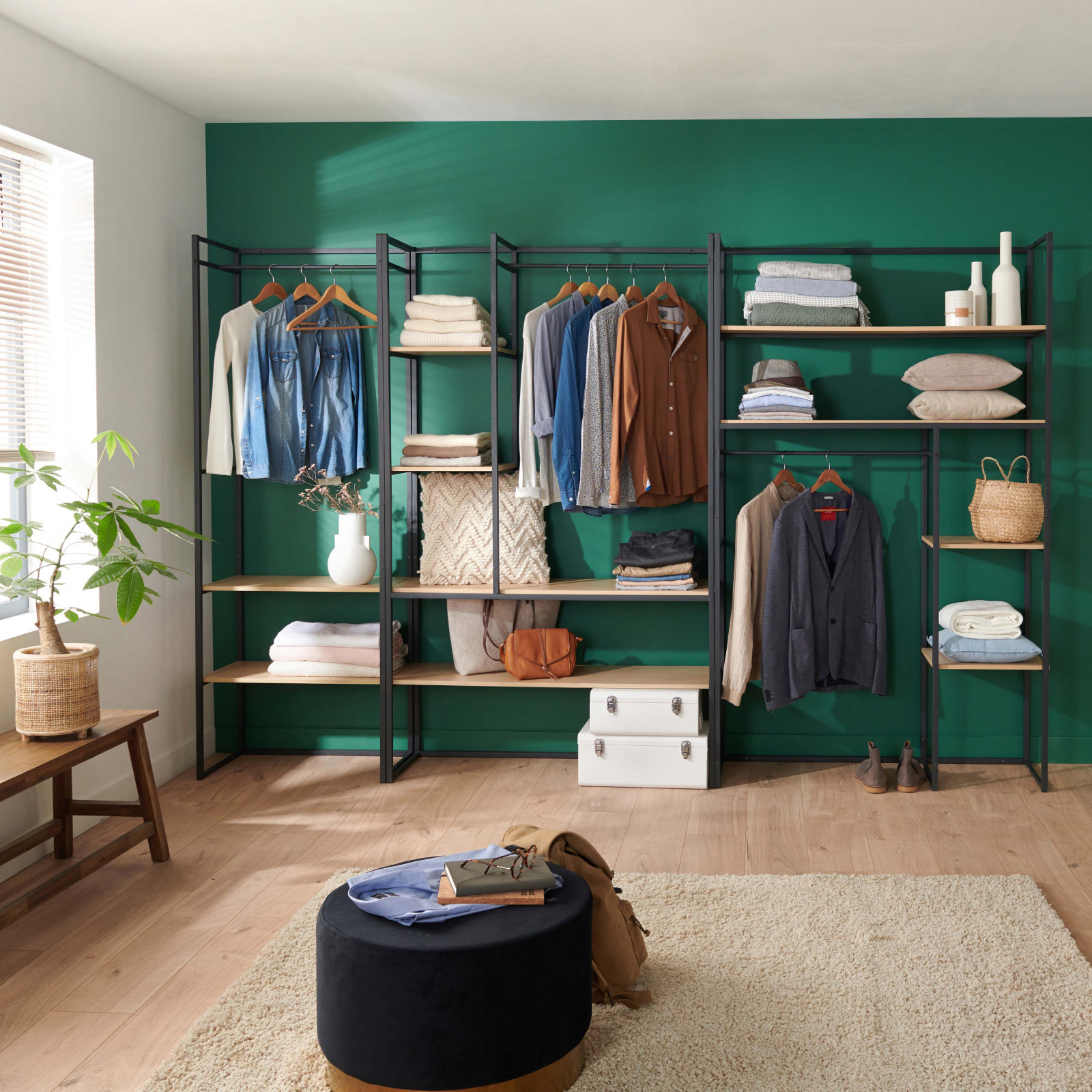 Le lot de 3 portants dressing ASHTON est conçu pour offrir un espace de rangement pratique et élégant, idéal pour un dressing, un vestiaire ou une entrée. Composé de deux grands portants et d’un petit portant, cet ensemble dispose de 10 étagères modulables et 3 barres de penderie, parfaits pour organiser vos vêtements, chaussures et accessoires au quotidien.