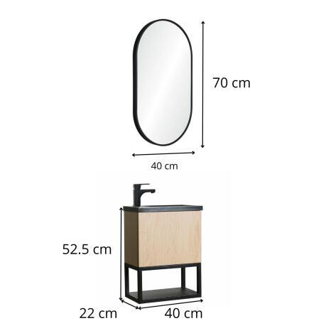Le meuble lave-mains NOVA propose un design sobre et graphique idéal pour aménager un coin toilette fonctionnel sans négliger le style. Son format compact s’adapte aux petits espaces tout en offrant deux types de rangement pratiques : un compartiment fermé par une porte et une niche ouverte intégrée dans la structure métallique inférieure. Ce modèle se décline en deux versions pour s’adapter à toutes les ambiances : Noir carbone intégral pour une finition uniforme ou Décor chêne avec structure métal noir pour une touche naturelle et chaleureuse. Le bois de ce meuble lave-mains possède le label FSC® C138476 garantissant une gestion responsable des forêts. Le caisson en bois est équipé d’une porte avec système de charnières à fermeture progressive pour un usage fluide et agréable. La structure métallique, à la fois solide et décorative, crée une zone de rangement ouverte avec étagère. Ce meuble est livré déjà monté pour une installation simplifiée.