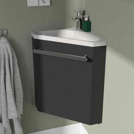Ensemble lave-mains angle suspendu avec robinet et armoire d'angle