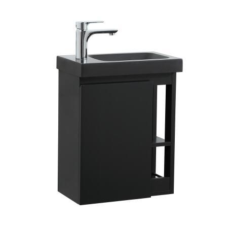 Ensemble lave-mains avec rangement latéral et robinet noir
