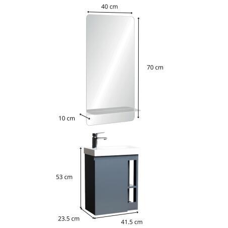 Ensemble lave-mains avec rangement latéral et miroir tablette