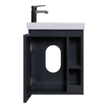 Meuble lave-mains suspendu avec vasque en résine blanc - avec rangement latéral x 1