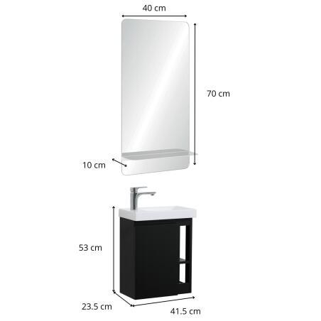 Ensemble lave-mains avec rangement latéral et miroir tablette