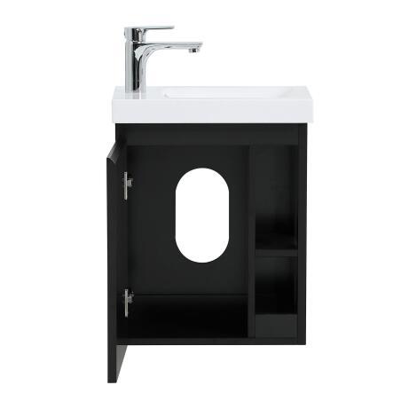Meuble lave-mains suspendu avec vasque en résine blanc - avec rangement latéral x 1