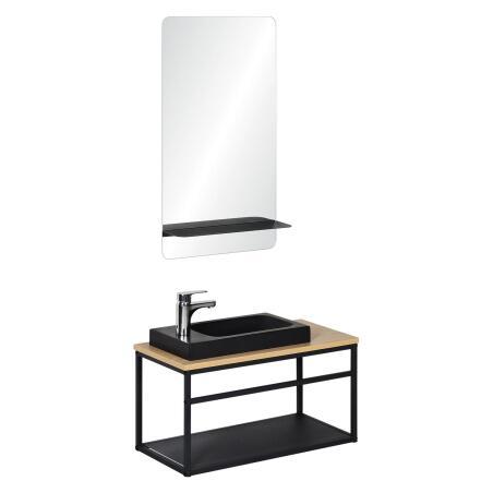 Meuble lave-mains Bois et Métal vasque Blanche WILL + robinet chromé + miroir