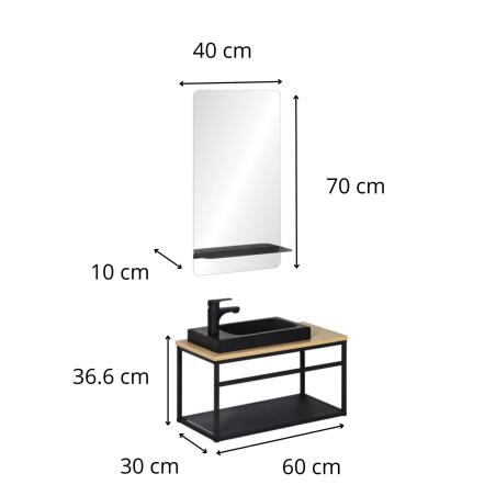 Ensemble lave-mains grande largeur avec robinet et miroir 60cm
