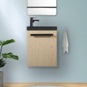 • Les versions décor chêne avec vasque noire associent un meuble chaleureux à une vasque en résine de synthèse noire, pour un effet contrasté très moderne.
