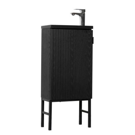Le lave-mains sur pieds Studio sera un choix parfait pour votre espace. Le lave-mains Studio, en décor chêne carbone, avec sa vasque noire, est l'addition parfaite pour les petits espaces tels que les toilettes ou une petite salle de bain. Son design contemporain apporte une touche d'originalité à votre intérieur. Fabriqué en MDF de haute qualité, ce meuble offre à la fois style et fonctionnalité. Ses compartiments fermés vous permettent de ranger vos affaires quotidiennes de manière organisée.