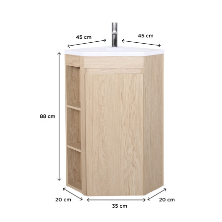 Meuble sous vasque d’angle Sorrento décor chêne : la solution gain de place pour les petits espaces