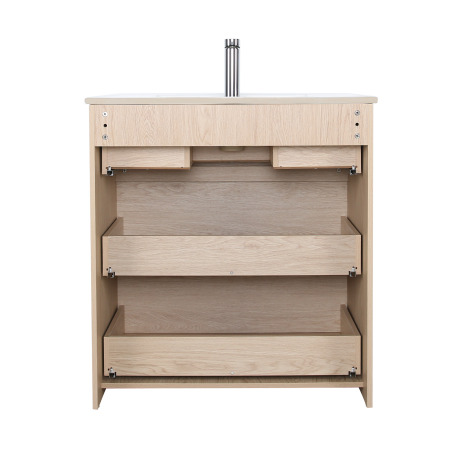 Apportez style et praticité à votre salle de bain avec le meuble sous vasque Sorrento décor chêne. Élégant et contemporain, ce modèle posé au sol sur pieds allie esthétique naturelle et fonctionnalité au quotidien.