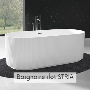 Exemple : Baignoire îlot striée en acrylique blanche 170 cm.