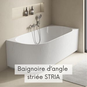 Découvrez par exemple notre baignoire acrylique murale blanche 170 cm ou la baignoire striée semi-îlot blanche 170 cm angle droit.