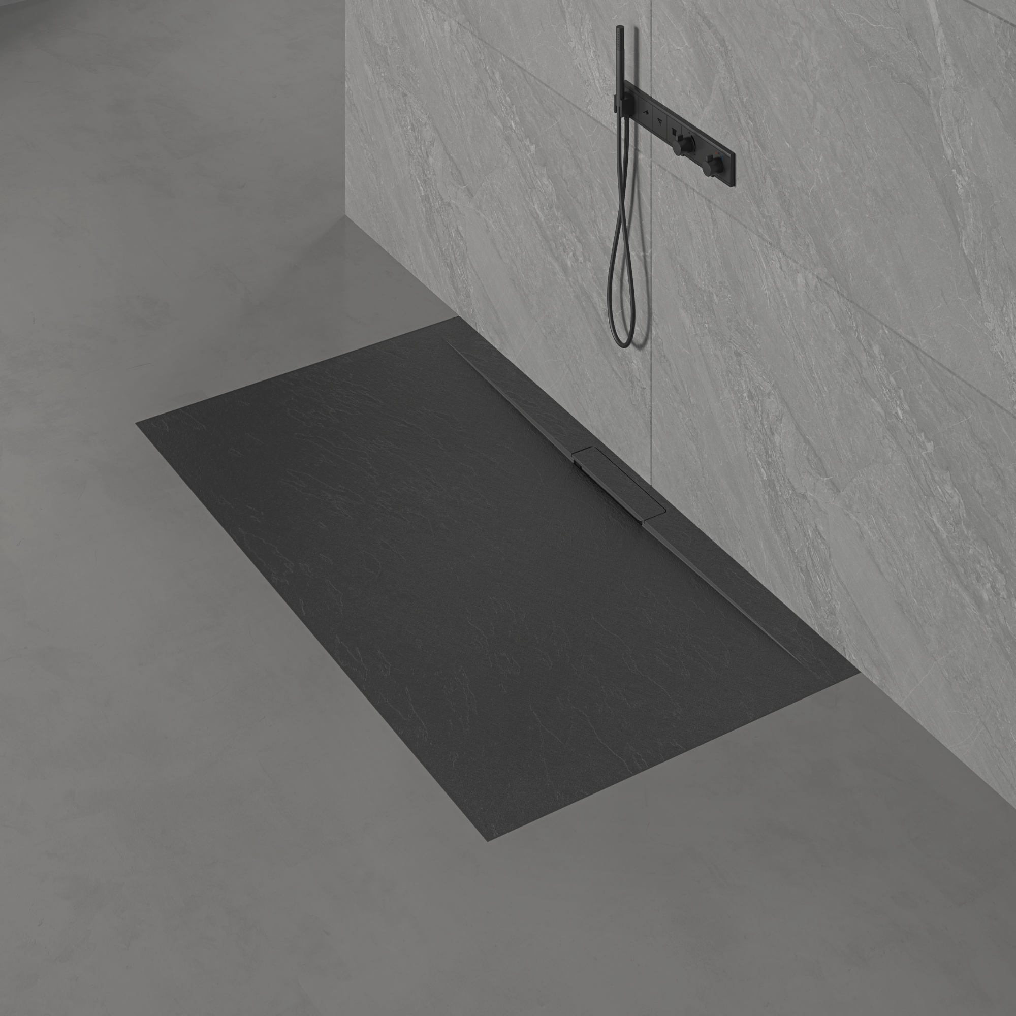 Le receveur de douche ONA séduit par son aspect ardoise naturel et sa texture fine, agréable au toucher.