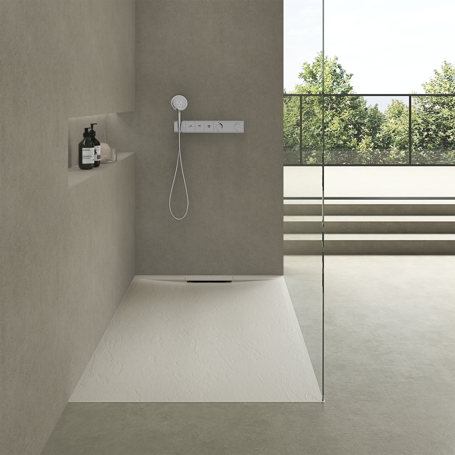 Avec son aspect pierre et son rendu minéral naturel, le receveur SOMA apporte une touche de caractère à votre espace douche.