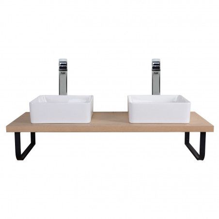 Plan de travail de salle de bain pour vasque à poser + 2 équerres porte serviettes en Métal Noir Mat.