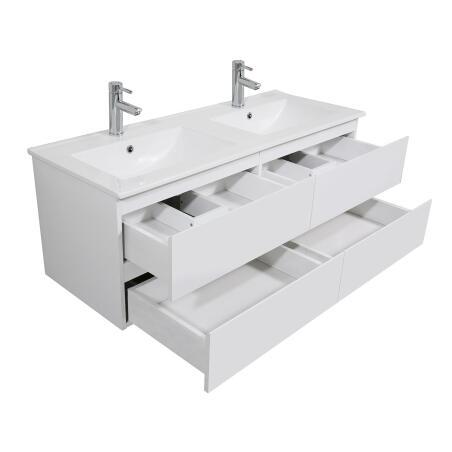Meuble double vasque suspendu 120cm - avec plan vasque céramique x 1