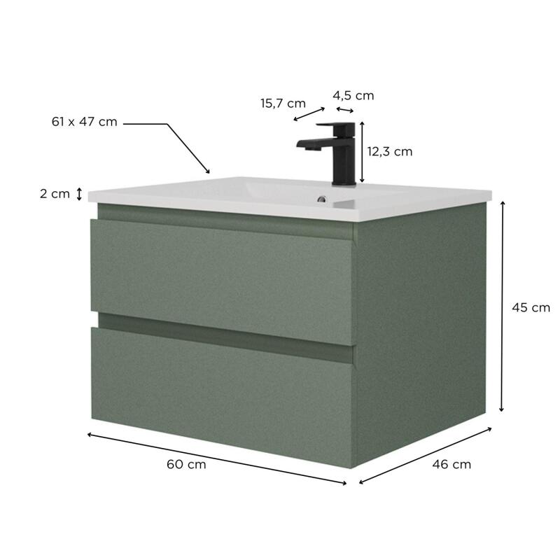 Meuble de salle de bain SORRENTO 60 cm avec plan vasque et 2 tiroirs spacieux