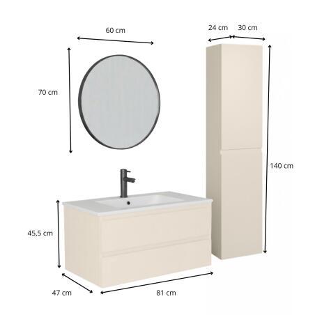 Ensemble meuble simple vasque 80cm avec plan céramique, robinet, miroir et colonne
