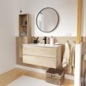 La colonne est composée de deux modules de rangement WILL un fermé et un ouvert. Vous pourrez choisir de disposer l'élément fermé en dessous ou au dessus de celui ouvert. Avec sa faible profondeur, il convient parfaitement pour ranger les serviettes et les produits de beauté.