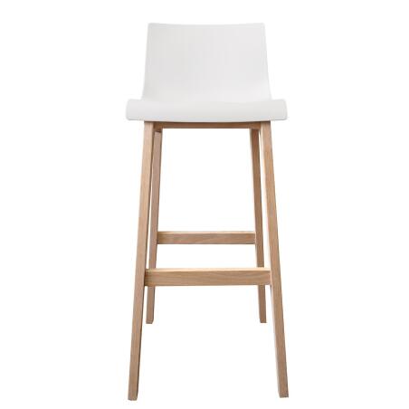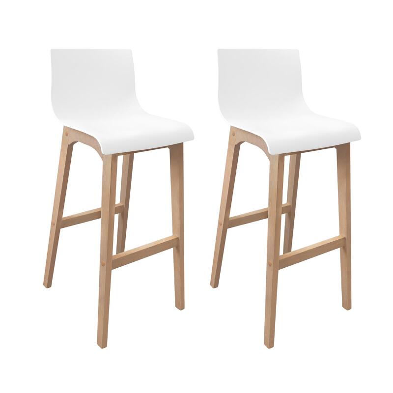 Lot de tabourets de bar en chêne et assise plastique blanche H75cm