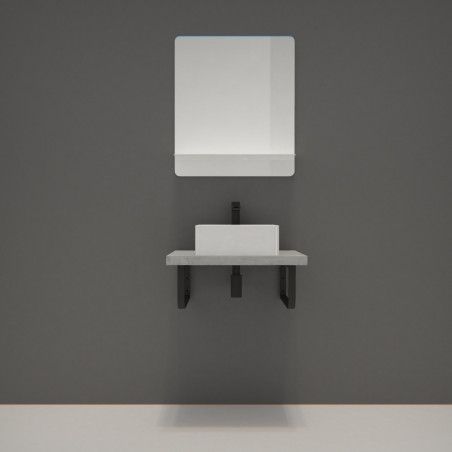 Découvrez cet ensemble de Salle de Bain WILL qui se compose d'un Plan de toilette 60 cm, d'un jeu de 2 équerres porte-serviettes en métal noir mat, d'une vasque à poser et d'un miroir avec tablette.